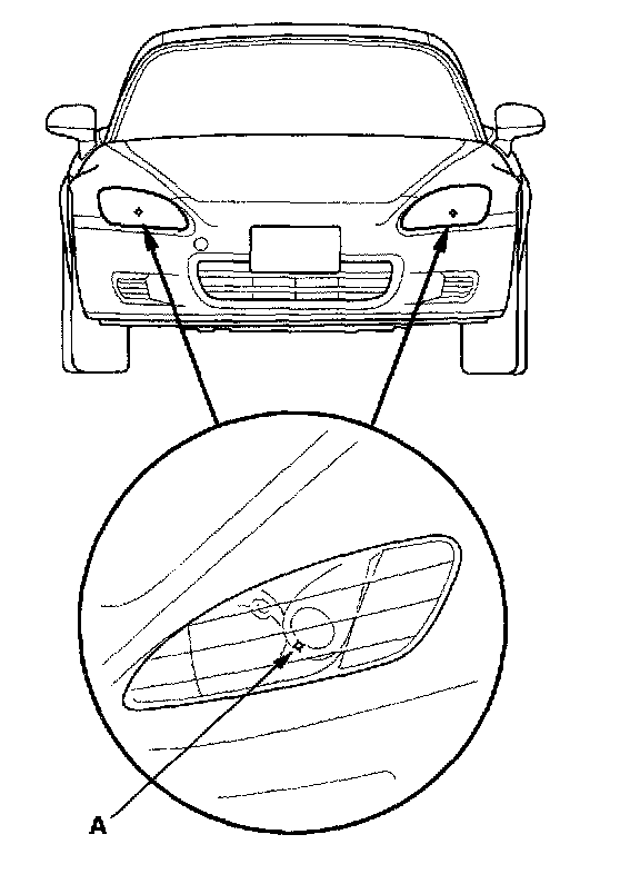 1. Clean the outer lens so that you can see the center of the headlights (A).