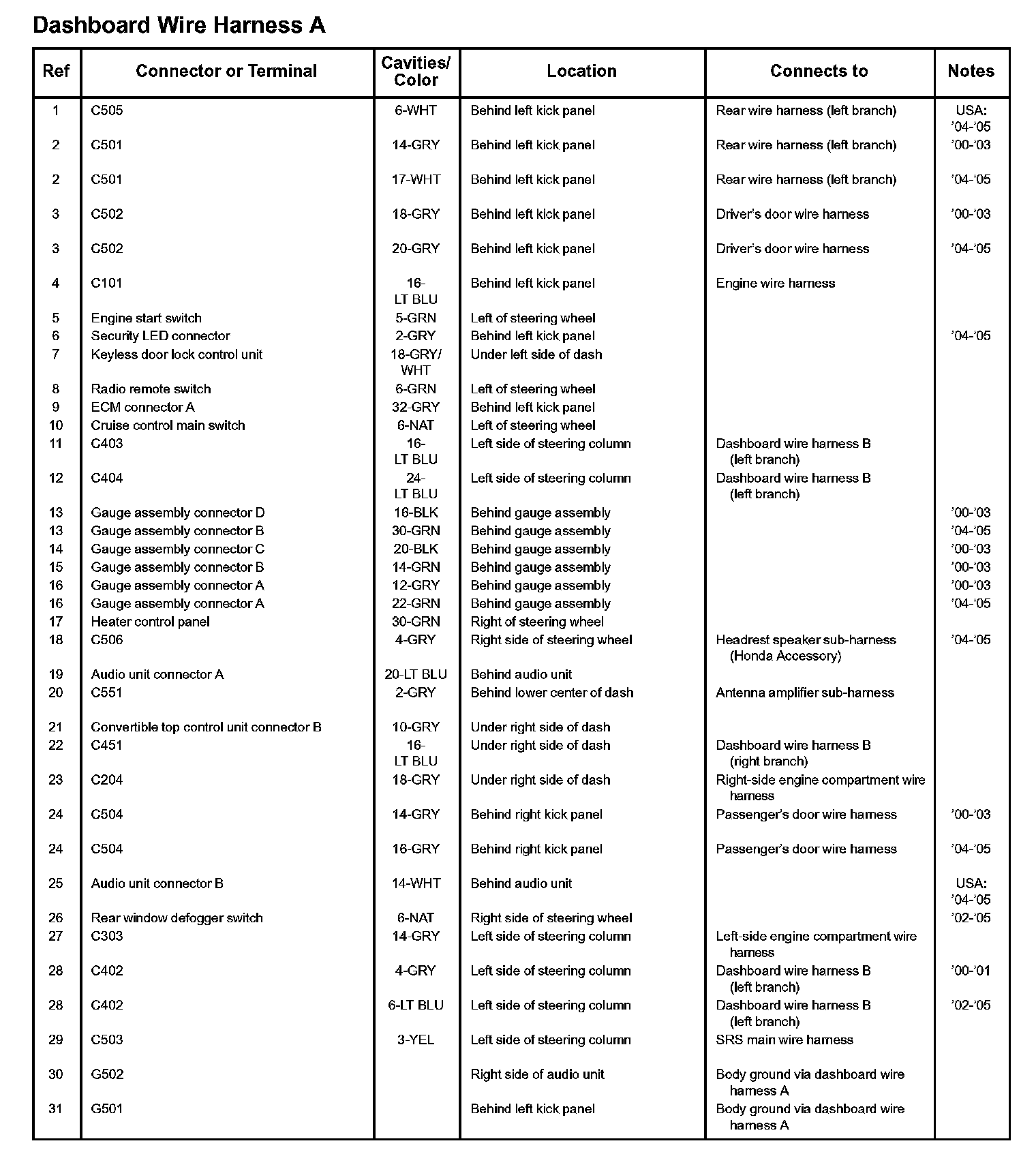 Dashboard Wire Harness A: