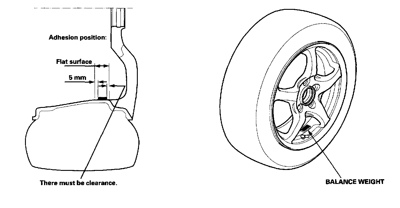 The wheels of this model are not designed to mount the balance weight on the outer side of the wheel. Instead, mount the self-adhesive balance weight on the inner side of the wheels. Note the following service tips and install the weights securely.