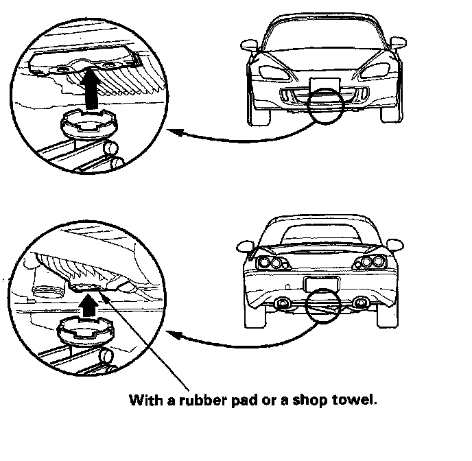 1. Block the rear wheels when raising the front of the vehicle; block the front wheels when raising the rear of the vehicle. Place the blocks behind and ahead of the wheels.