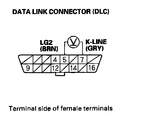 13. Measure voltage between DLC terminals No. 5 and No. 7.