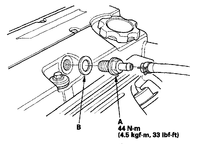 Install the valve in the reverse order of removal with a new washer (B).