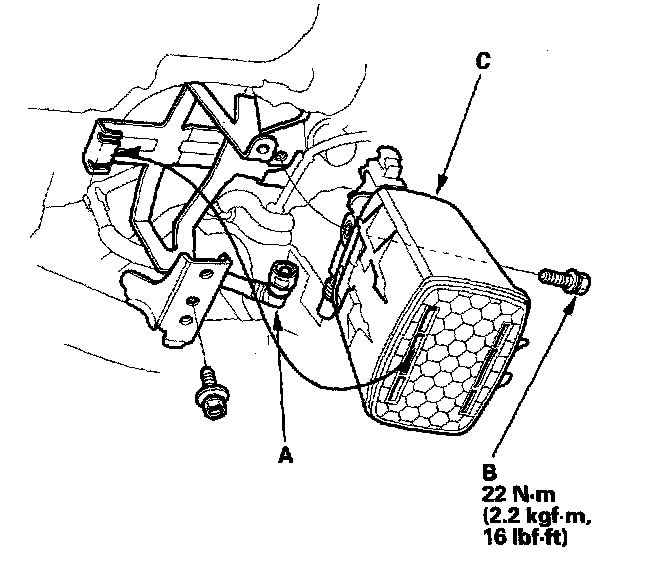 20. Disconnect the fuel tank vapor vent tube (A), then remove the bolt (B) and the EVAP canister (C).