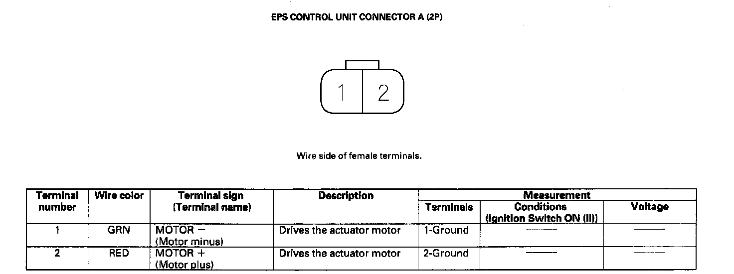 EPS Control Unit Inputs and Outputs for Connector A (2P)