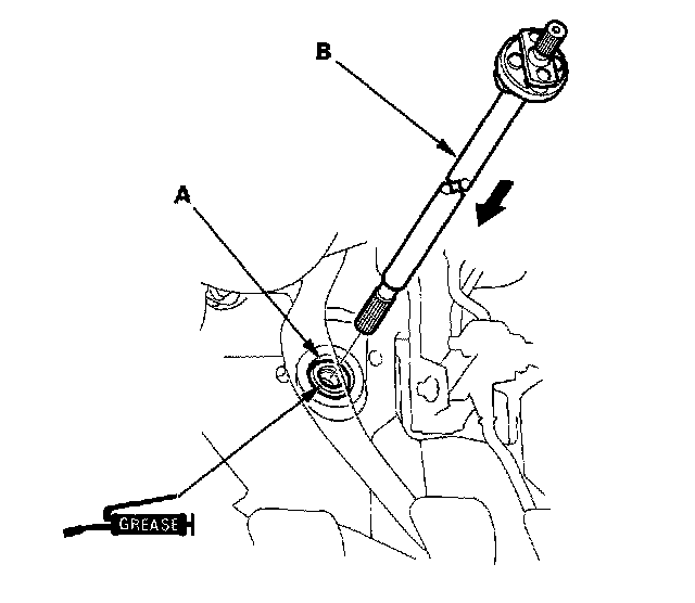 1. Apply grease to the inside surface of the pinion dust seal (A).