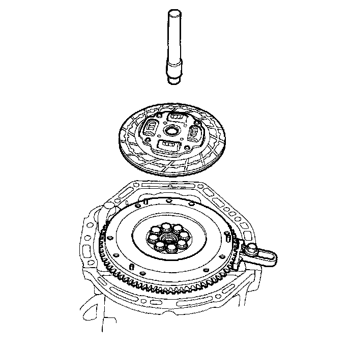 6. Install the special tool, then torque the flywheel mounting bolts in a crisscross pattern in several steps.
