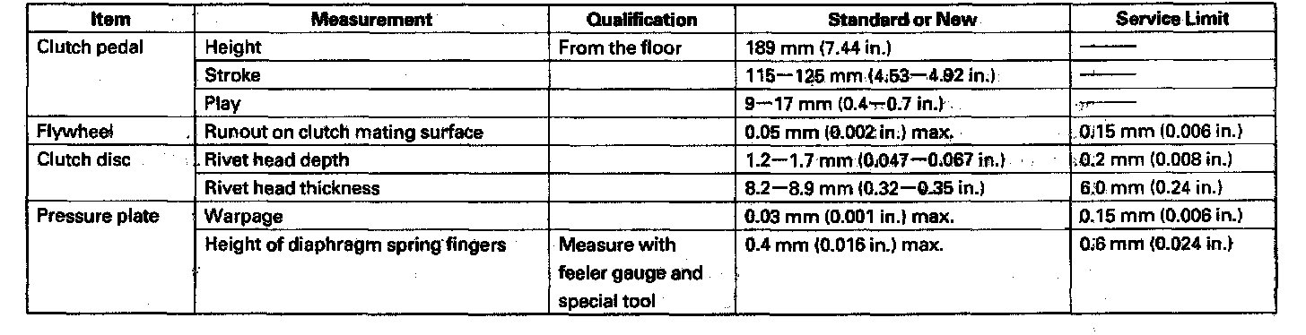 2005 Clutch Specifications: