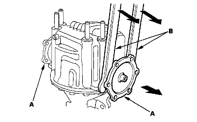 Removal and Installation1. Remove the output shafts (A) from the differential case assembly using the pry bars (B).
