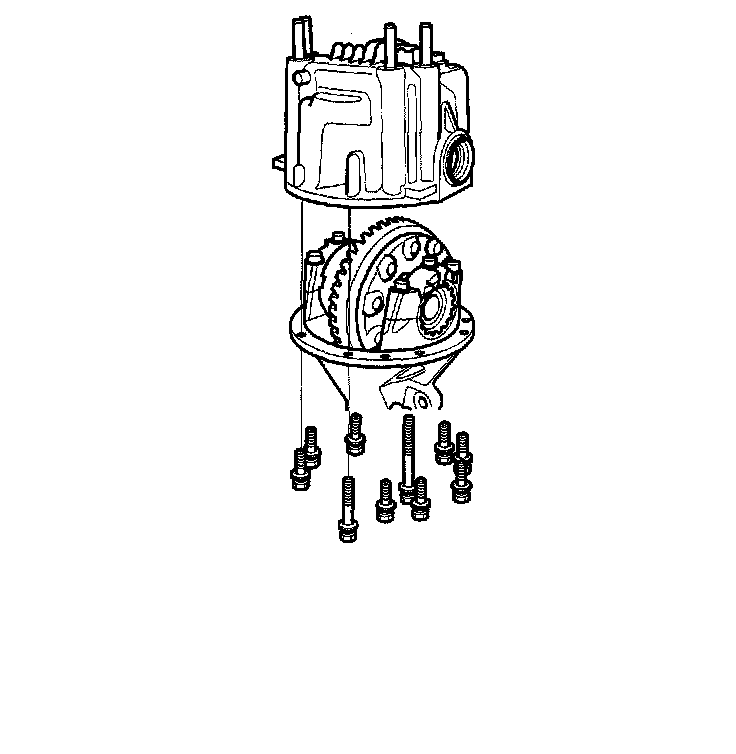 2. Remove the ten mounting bolts in a crisscross pattern in several steps, then remove the differential case assembly.