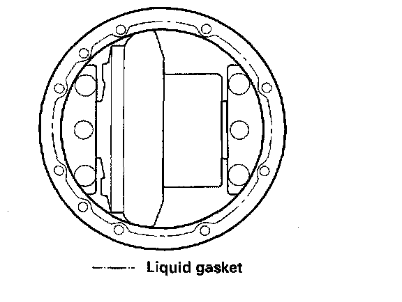 3. Remove the dirt and oil from the sealing surfaces. Apply liquid gasket (P/N 08718-0001) to the sealing surface. Be sure to seal the entire circumference of the bolt holes to prevent oil leakage.