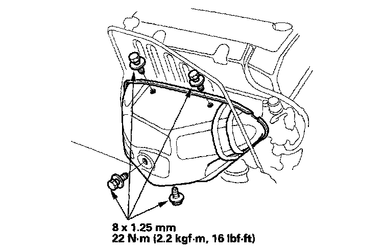 11. Install the five lower transmission mounting bolts.