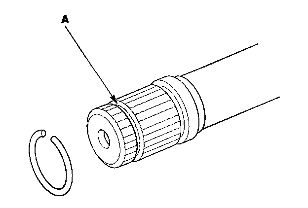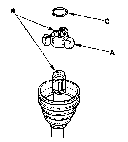 4. Install a new circlip (C) into the driveshaft groove. Always rotate the circlip in its groove to make sure it is fully seated.