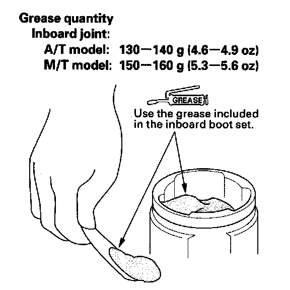 6. Pack the inboard joint with the joint grease included in the new inboard boot set.