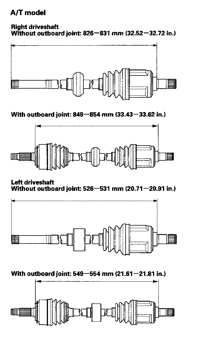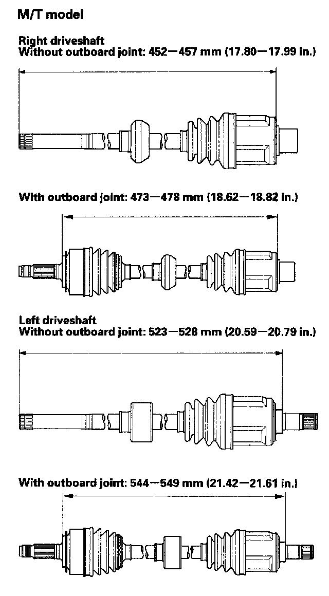 9. Adjust the length of the driveshafts to the figure as shown, then adjust the boots to halfway between full compression and full extension.