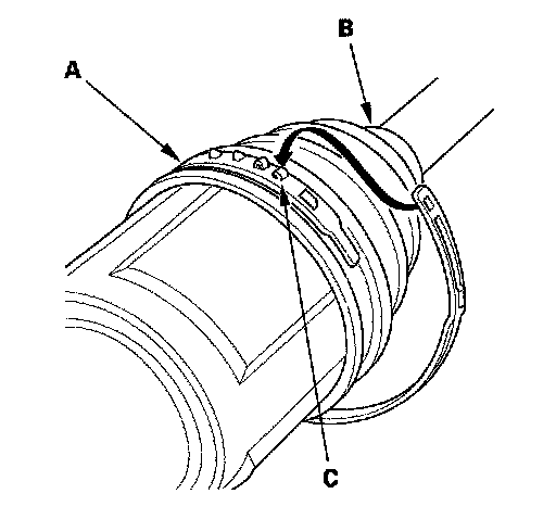 18. Using a wrench on the winding mandrel of the boot band tool, tighten the band until the marked spot (C) on the band meets the edge of the clip.