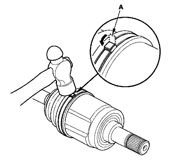 1. Wrap the splines with vinyl tape (A) to prevent damage to the inboard boot.