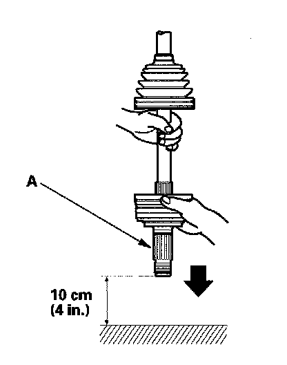 6. To completely seat the outboard joint, pick up the driveshaft and joint, and tap or hit them from a height of about 10 cm (4 in.) onto a hard surface.