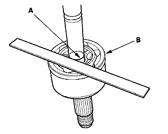 7. Check the alignment of the paint mark (A) you made with the outboard joint rim (B).