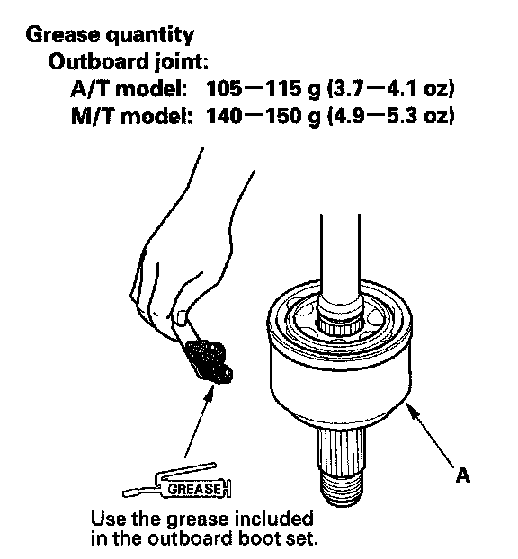 8. Pack the outboard joint (A) with the remaining joint grease included in the new outboard boot set.