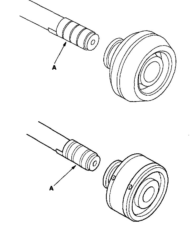 3. Wrap the splines on the driveshaft with vinyl tape (A) to prevent damage to the dynamic damper.