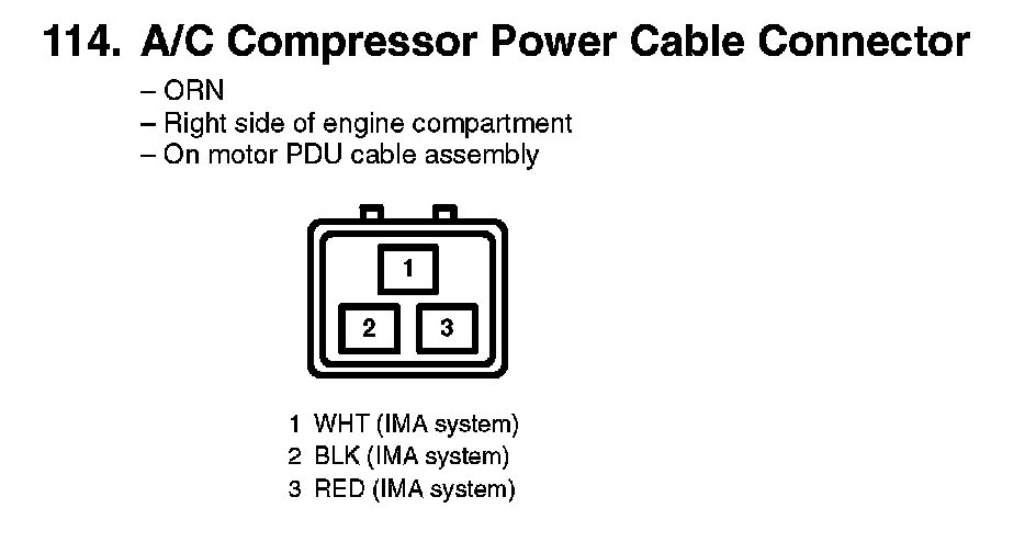114. A/C Compressor Power Cable Connector: