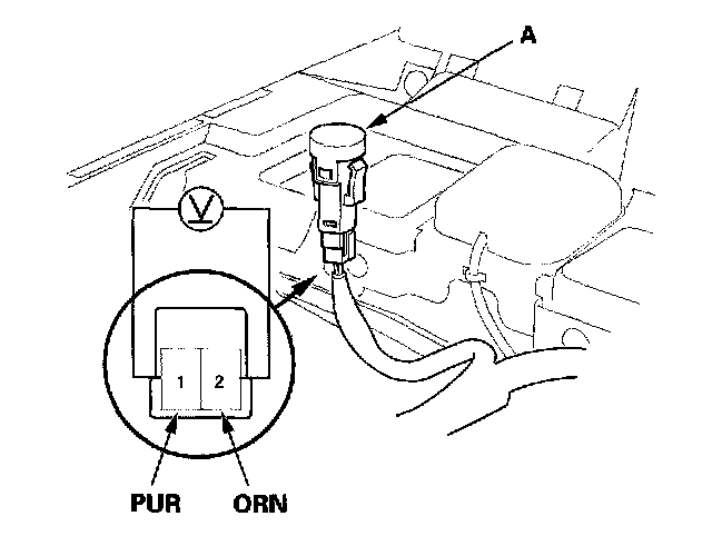 2. Turn the ignition switch ON (II). Measure the voltage between the terminals with the (+) probe on the No. 2 terminal and the (-) probe on the No. 1 terminal with the 2P connector connected.
