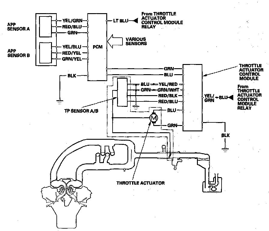 Electronic Throttle Control SystemThe throttle is electronically controlled by the electronic throttle control system. Refer to the system diagram to see a functional layout of the system.