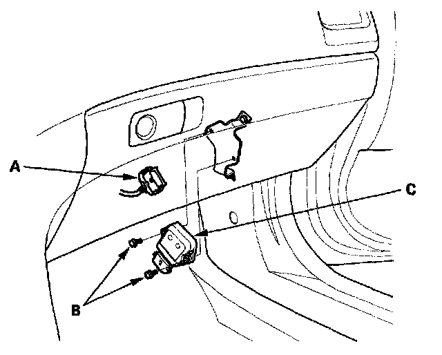 3. Remove the bolts (B) and the throttle actuator control module (C).