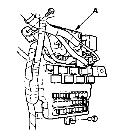 6. Disconnect the connectors from the fuse side of the under-dash fuse/relay box (A).