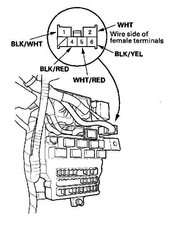 6. Disconnect the 6P connector from the under-dash fuse/relay box.