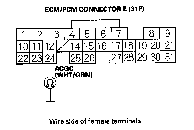 8. Check for continuity between ECM/PCM connector terminal E24 and body ground.