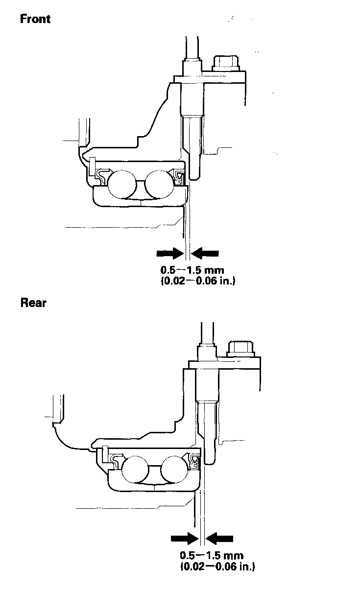 Front/Rear: 0.5 - 1.5 mm (0.02 - 0.06 inch)