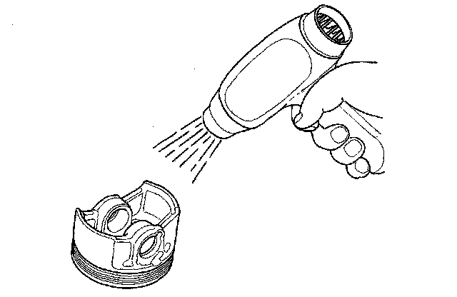 2. Coat the piston pin bore in the piston, the bore in the connecting rod, and the piston pin with engine oil.