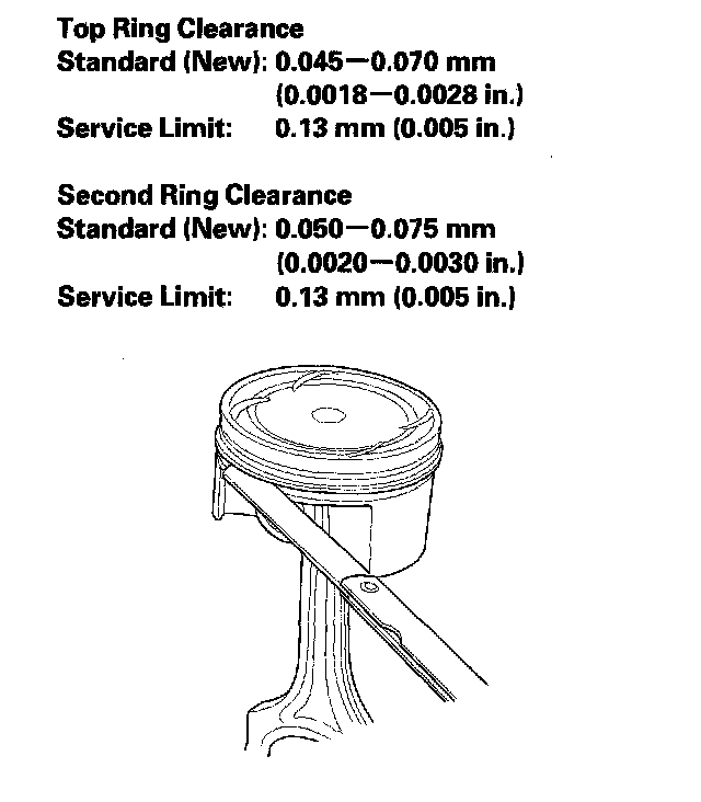 9. After installing a new set of rings, measure the ring-to-groove clearances.