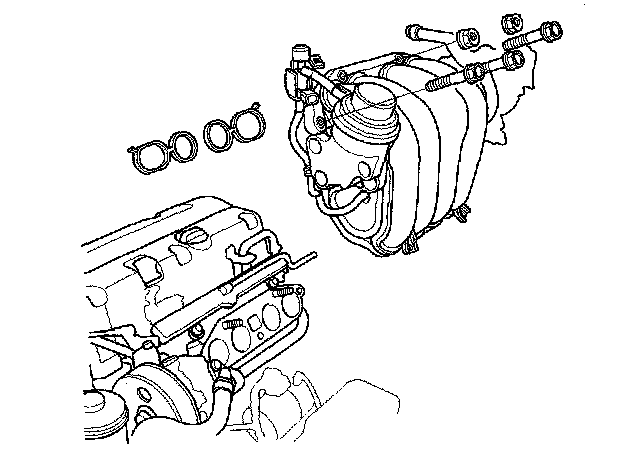 2. Install the engine wire harness connectors and wire harness clamps to the intake manifold.