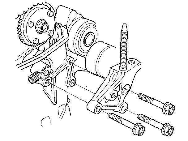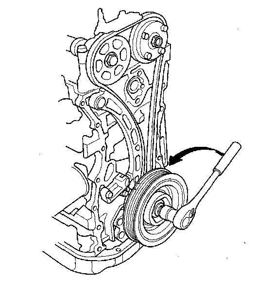 14. Turn the crankshaft counterclockwise to compress the auto-tensioner.