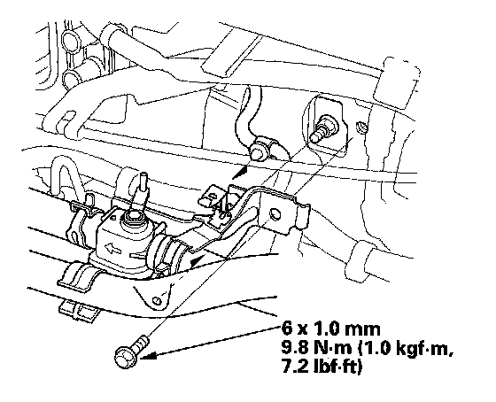 7. Remove the mounting bolt and the heater valve as shown.