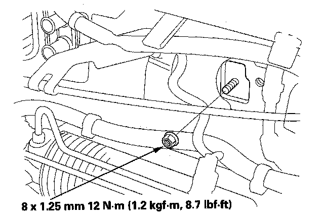 8. Remove the mounting nut from the heater unit. Take care not to damage or bend the fuel lines and the brake lines, etc.