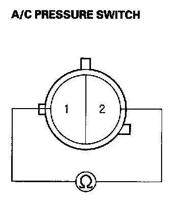 8. Check for continuity between the No. 1 and No. 2 terminals of the A/C pressure switch.