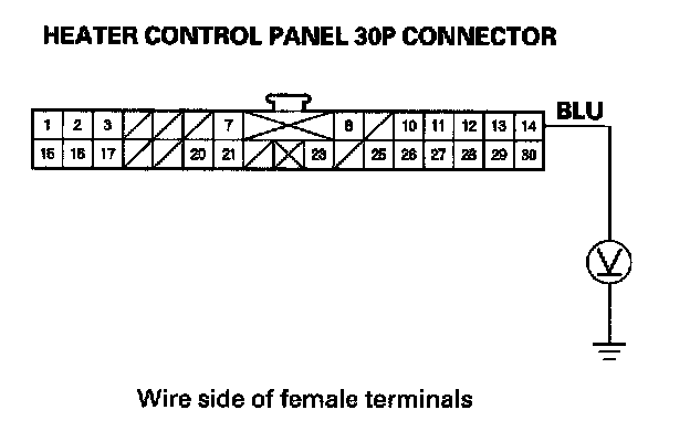 12. Measure the voltage between the No. 14 terminal of the heater control panel 30P connector and body ground.