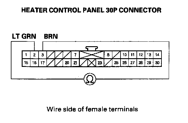 14. Measure the resistance between the No. 2 and No. 3 terminals of the heater control panel 30P connector.