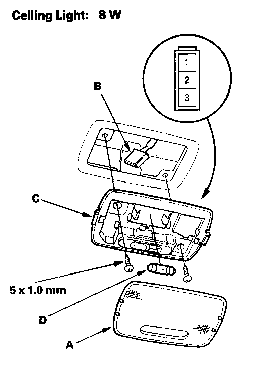 6. If the continuity is not as specified, check the bulb (D). If the bulb is OK, replace the light.