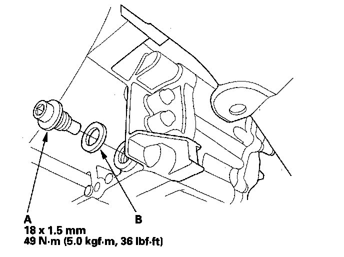 5. Reinstall the drain plug and a new sealing washer (B).