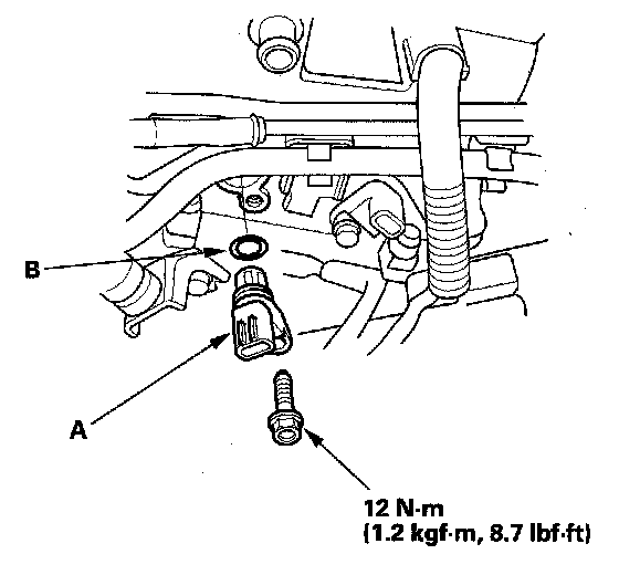 4. Install the sensor in the reverse order of removal with a new O-ring (B).