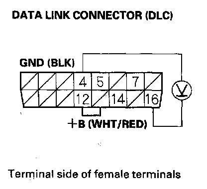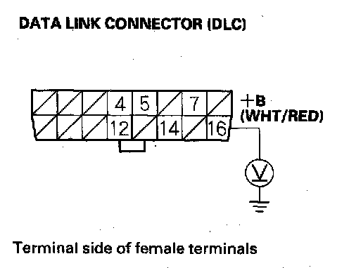 2. Measure voltage between DLC terminals No. 4 and No.16.