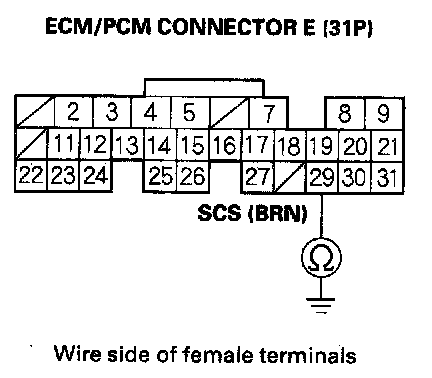 13. Check for continuity between ECM/PCM connector terminal E29 and body ground.