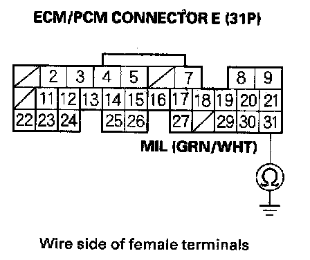 YES - Check for an open in the wire between the ECM/PCM (E31) and the gauge assembly. Also check for a blown MIL bulb. If the wires and the bulb are OK, replace the gauge assembly.