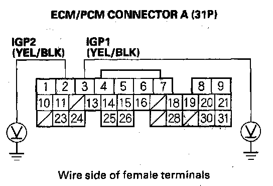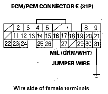 18. Connect ECM/PCM connector terminal E31 to body ground with a jumper wire.