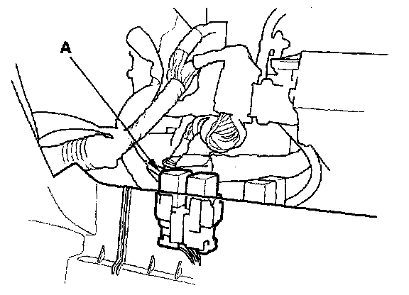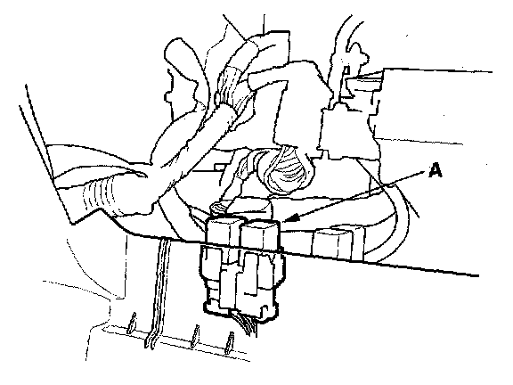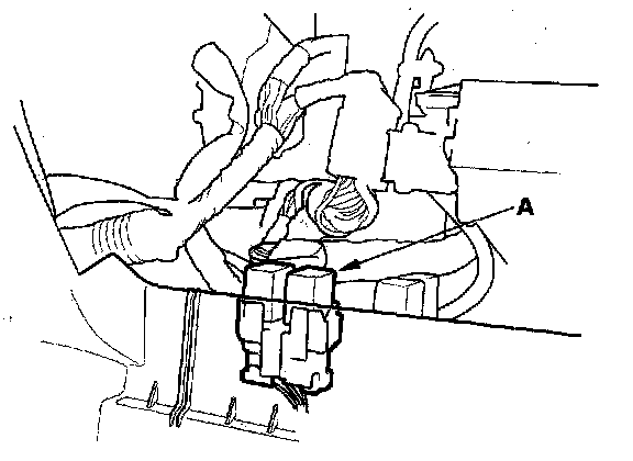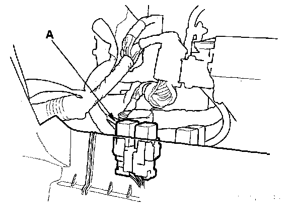 60. Remove the glove box, then remove PGM-FI main relay 1 (FI MAIN) (A).