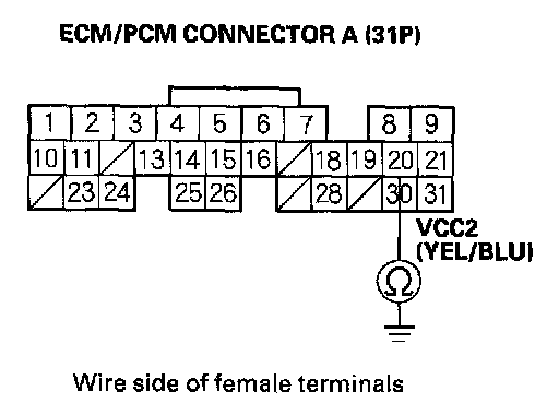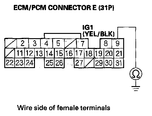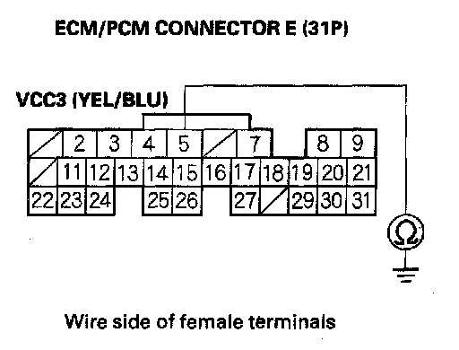 15. Check for continuity between ECM/PCM connector terminal E31 and body ground.